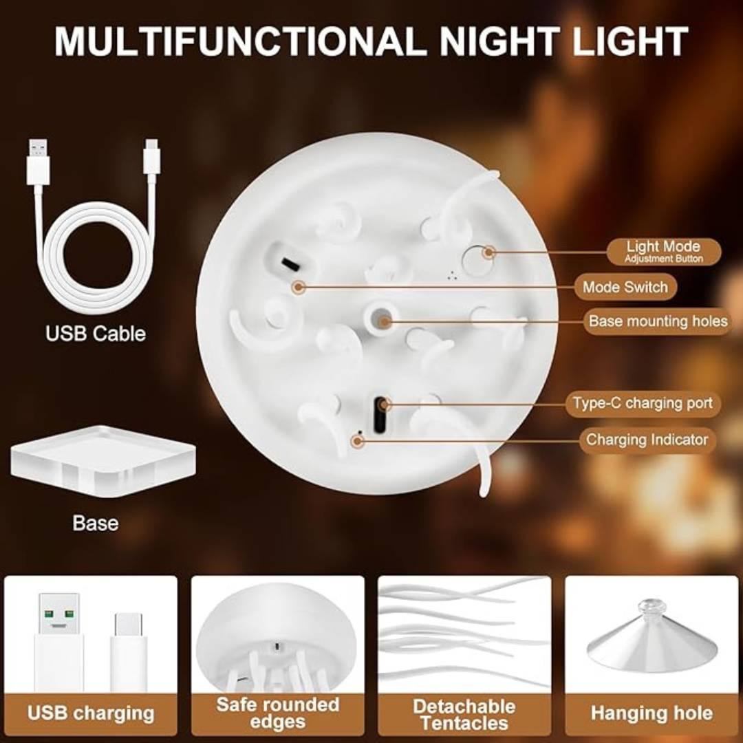 A glowing jellyfish with 9 rotating tentacles that move automatically, just like a real jellyfish swimming.
